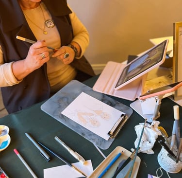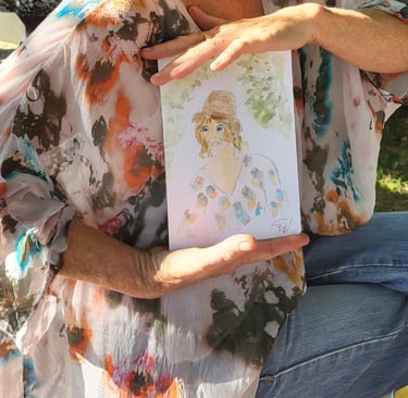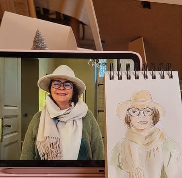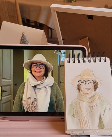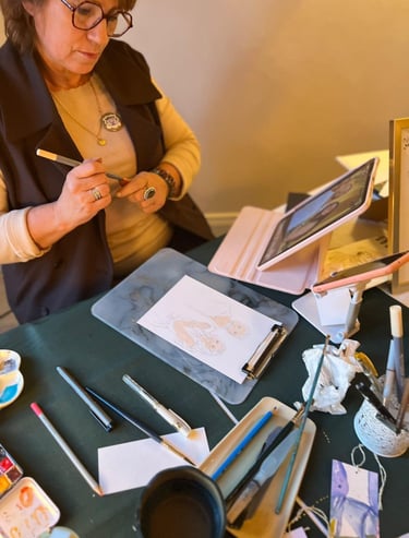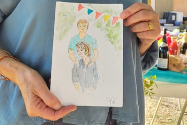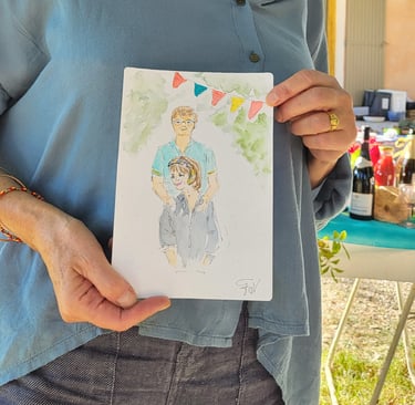 Je m'appelle Francine, aquarelliste en Provence avec un faible pour les jolis moments et les sourires spontanés. Installée près d'Avignon, à Carpentras, je croque sur le vif les invités de vos événements, armée de mon pinceau, de beaucoup de douceur… et parfois d’un soupçon de paillettes.