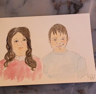 Je réalise un portrait à l’encre et à l’aquarelle à partir de vos photos de famille anciennes (même abîmées).