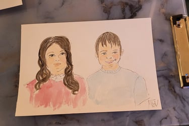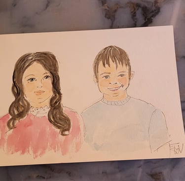 Je réalise un portrait à l’encre et à l’aquarelle à partir de vos photos de famille anciennes (même abîmées).