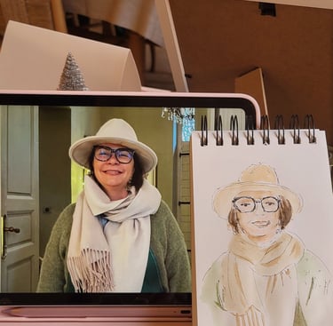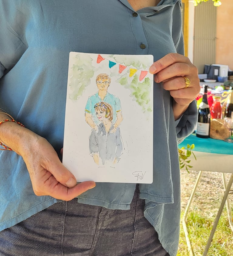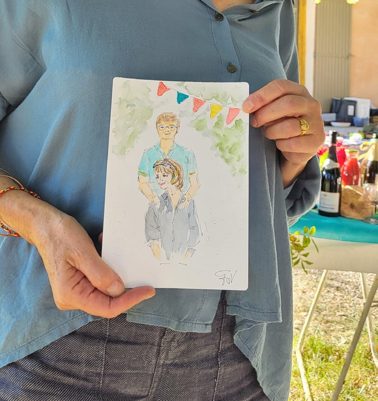 Je m'appelle Francine, aquarelliste en Provence avec un faible pour les jolis moments et les sourires spontanés. Installée près d'Avignon, à Carpentras, je croque sur le vif les invités de vos événements, armée de mon pinceau, de beaucoup de douceur… et parfois d’un soupçon de paillettes.