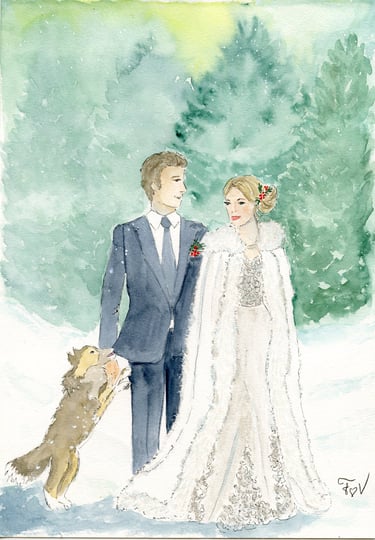 Je vous propose plusieurs formules de croquis illustrés, en direct ou d’après photo, pour immortaliser vos plus beaux souvenirs avec sensibilité et originalité. Possibilité de prestation de live-painting, tableau peint en direct à l'aquarelle pendant votre évènement.