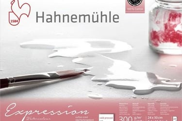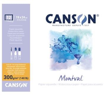 Pour l'aquarelle, un grammage d'au moins 300 g/m² est recommandé (c' est le poids du papier par mètre carré). Cette densité permet au papier d'absorber l'eau sans gondoler excessivement, offrant ainsi une surface stable pour travailler. Si tu travailles beaucoup dans l'humide, il sera toutefois nécessaire de fixer le papier avec un scotch spécial.