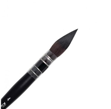 Le plus polyvalent est un pinceau de taille moyenne, rond à bout bien pointu (c'est important) de taille 6 ou 8, . Il est adapté pour les aplats de couleur, les lavis moyens, et peut également être utilisé pour quelques travaux de précision. Grâce à sa forme arrondie, il est facile de contrôler la quantité d'eau et de pigment, offrant ainsi une bonne flexibilité pour diverses techniques de peinture. S'il a un bout bien pointu, vous pourrez faire aussi des détails précis. Le pinceau moyen est souvent le plus utilisé pour réaliser des dégradés, des mélanges et couvrir des surfaces moyennes de votre tableau.